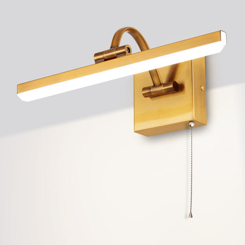 Stylish bathroom wall light in a gold finish with an adjustable swan neck and flexible head for optimal lighting. Complete with a pull chain. Most suited for above a mirror.