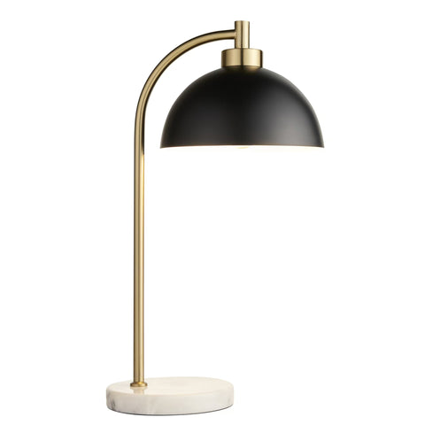 A modern style table lamp in gold with a black metal shade and a white marble base. Could be used as a desk lamp for an office or as nice table lamp to complement a stylish setting. Takes 1 E27 bulb. Floor lamp to match.