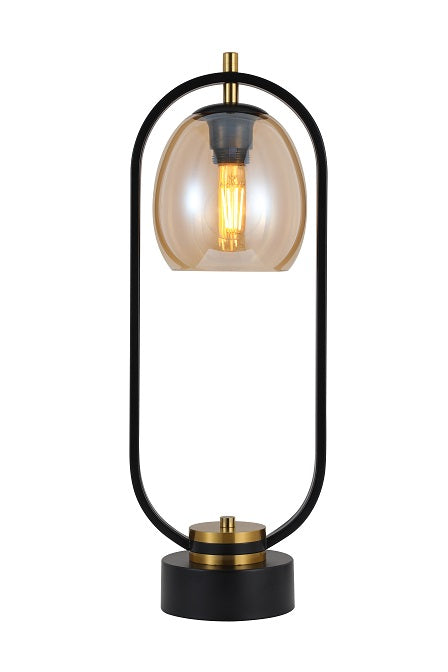Nice elegant table lamp in black and gold finish with an amber glass shade. Could suit a side board or a radiator cover in small room or hallway. Lovely warm glow when using an amber bulb. Takes 1 x E27 bulb.